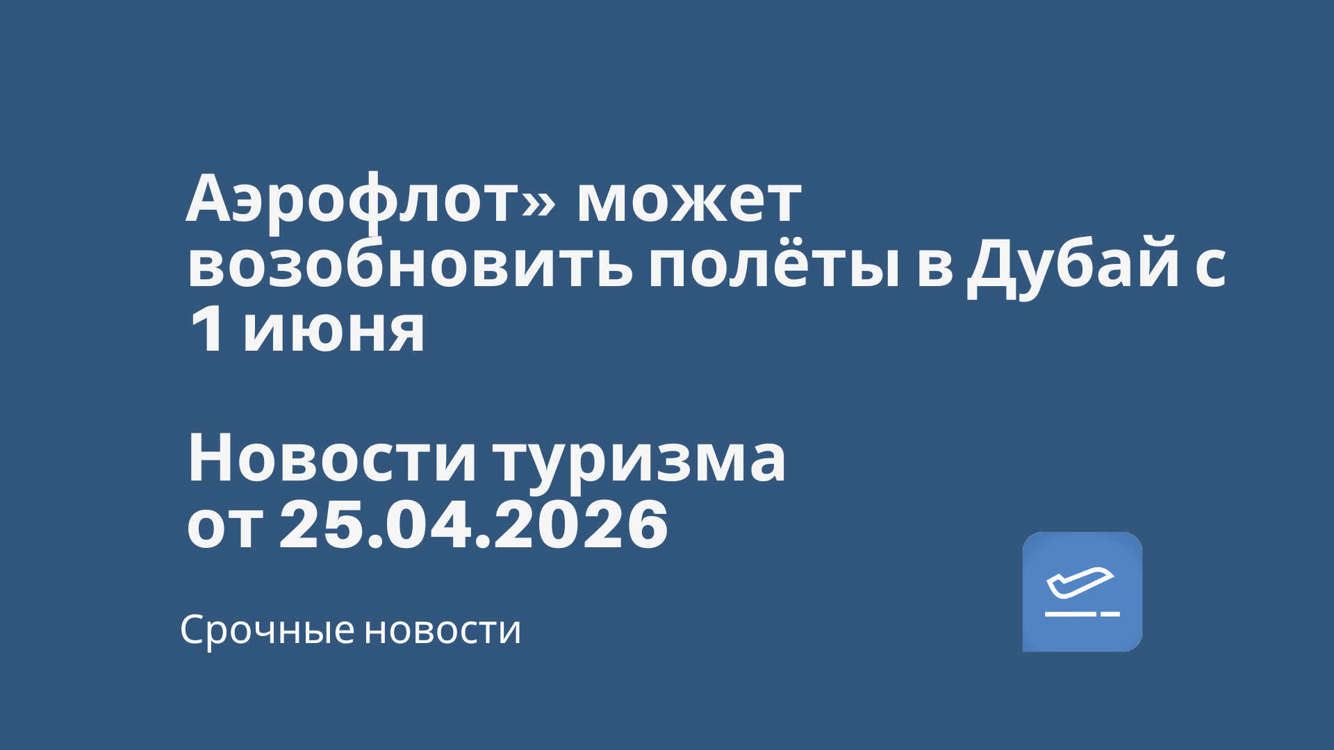 Новости - Аэрофлот» может возобновить полёты в Дубай с 1 июня. Новости туризма от 25.04.2026 Новости
