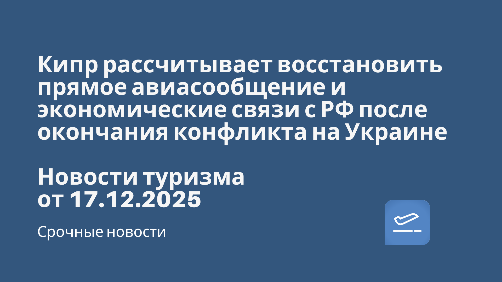 Новости - Кипр рассчитывает восстановить прямое авиасообщение и экономические связи с РФ после окончания конфликта на Украине. Новости туризма от 17.12.2025 Новости