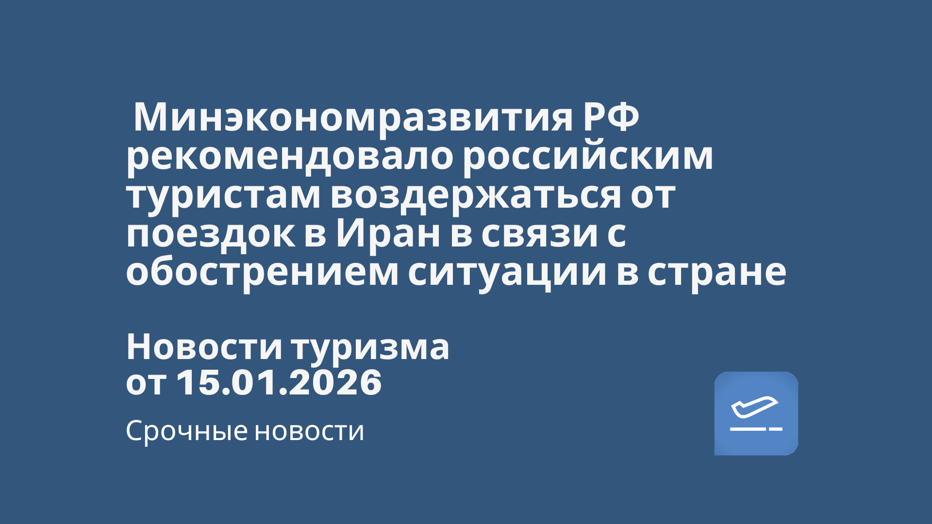 Новости - Минэкономразвития РФ рекомендовало российским туристам воздержаться от поездок в Иран в связи с обострением ситуации в стране. Новости туризма от 15.01.2026 Новости