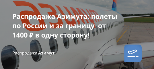 Билеты из... - Распродажа Азимута: полеты по России и за границу от 1400 ₽ в одну сторону! Билеты из...