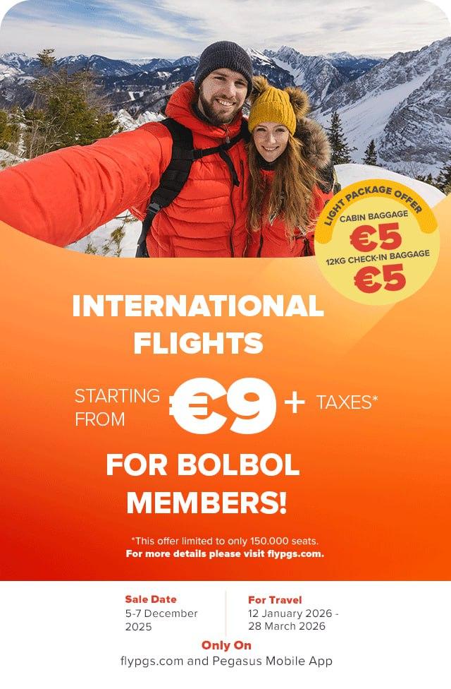 У Pegasus до 07 декабря распродажа 150 000 билетов на сайте и в мобильном приложении с ценами от €9.