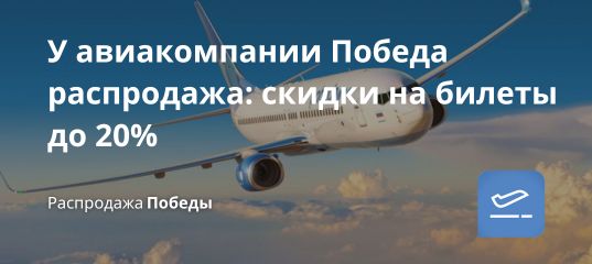 У авиакомпании Победа распродажа: скидки на билеты до 20% по промокоду SUGROB.
