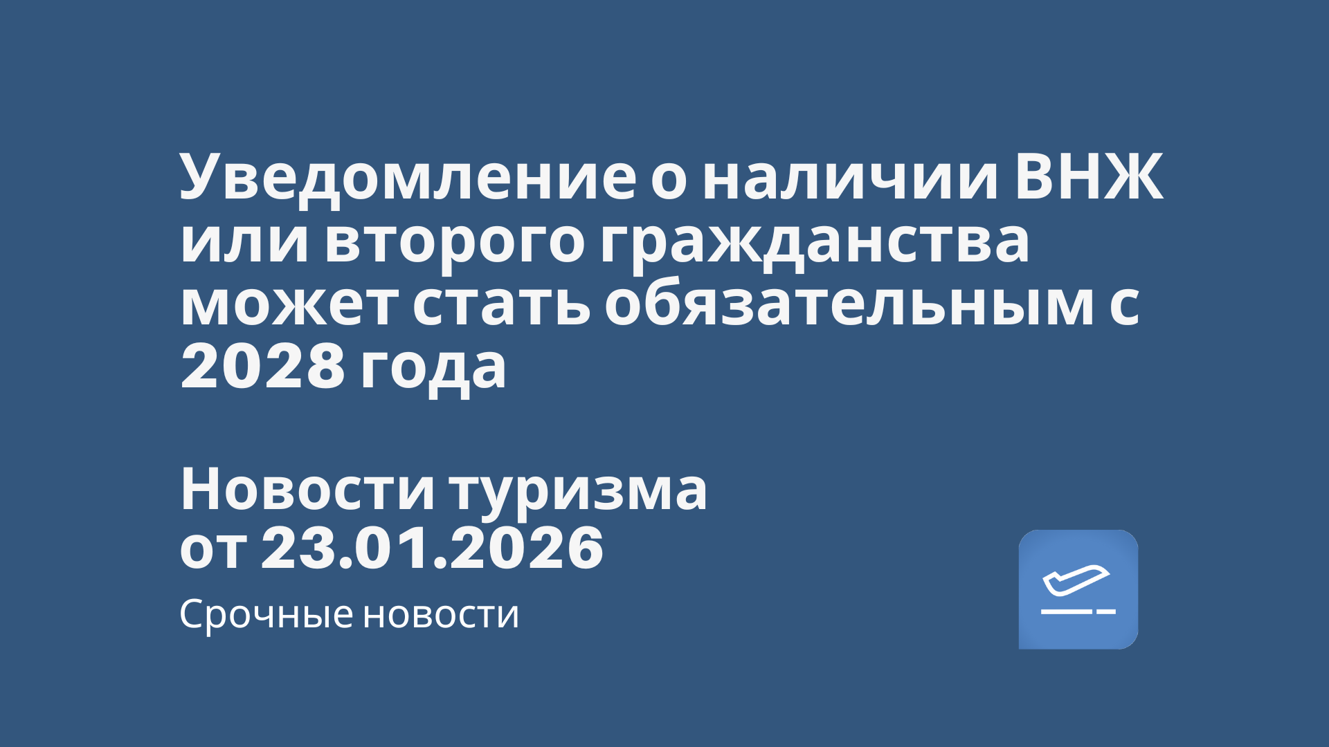 Новости - Уведомление о наличии ВНЖ или второго гражданства может стать обязательным с 2028 года. Новости туризма от 23.01.2026 Новости